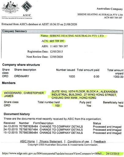7. Since at least 2014 - Serene Industries Australian office details have been